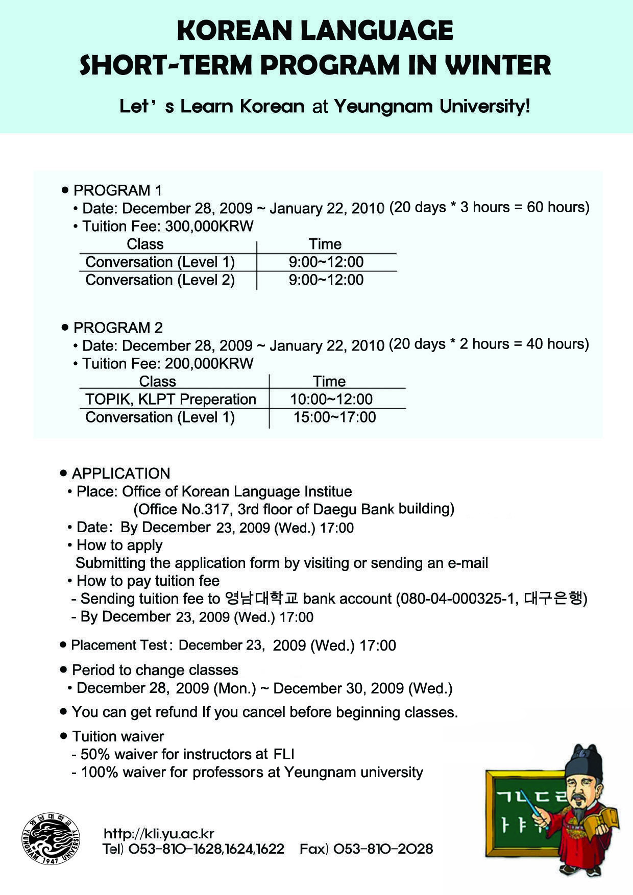 - Place: Office of Korean Language Institute